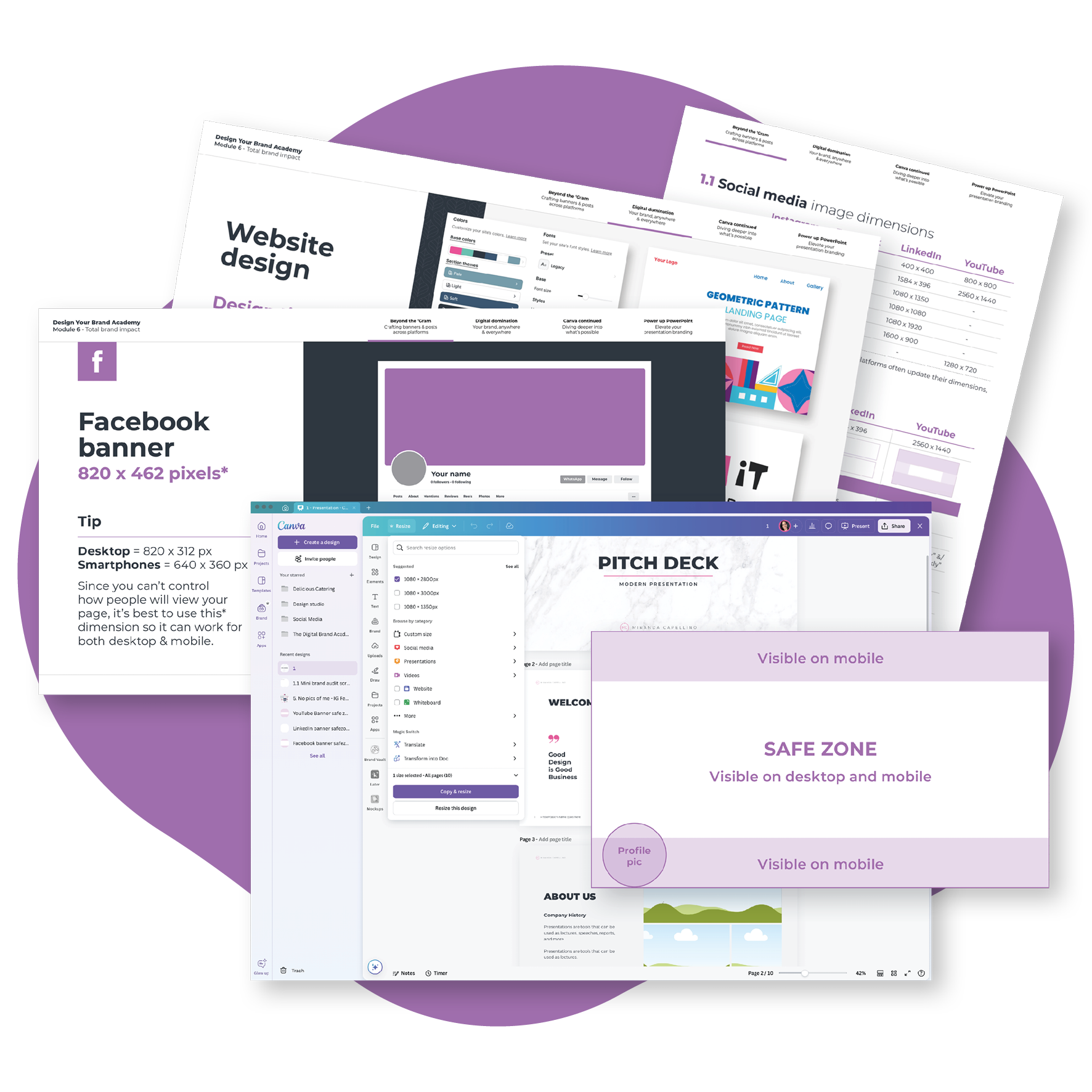 Your brand doesn’t stop at Instagram. From lead magnets to email banners, YouTube thumbnails to presentation decks – this module shows you how to make everything look polished, cohesive & pro (whether you're creating for your brand or someone else's).