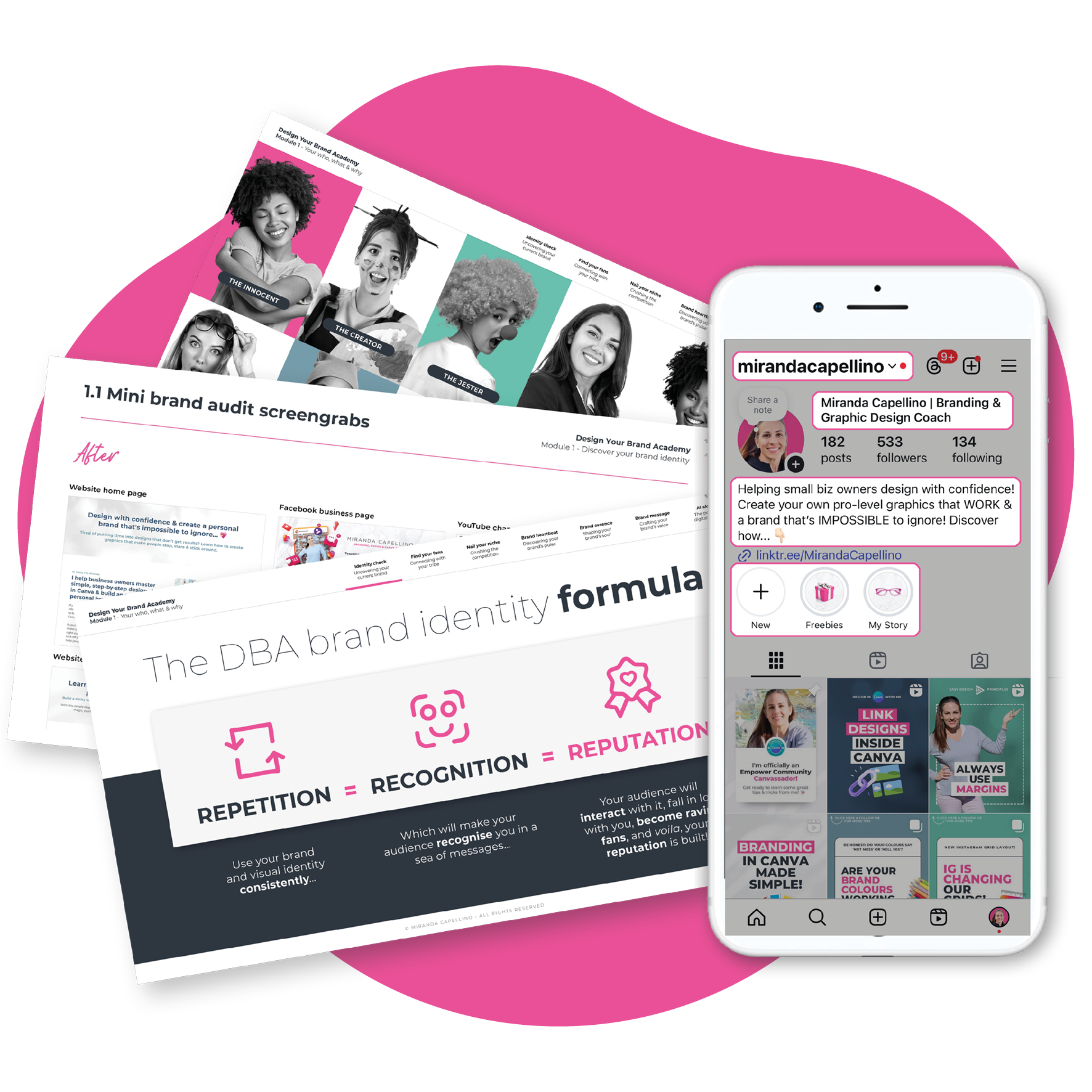 Inside DBA, you’ll discover how to think like a brand strategist, so every colour, font & layout works on purpose – not by accident.