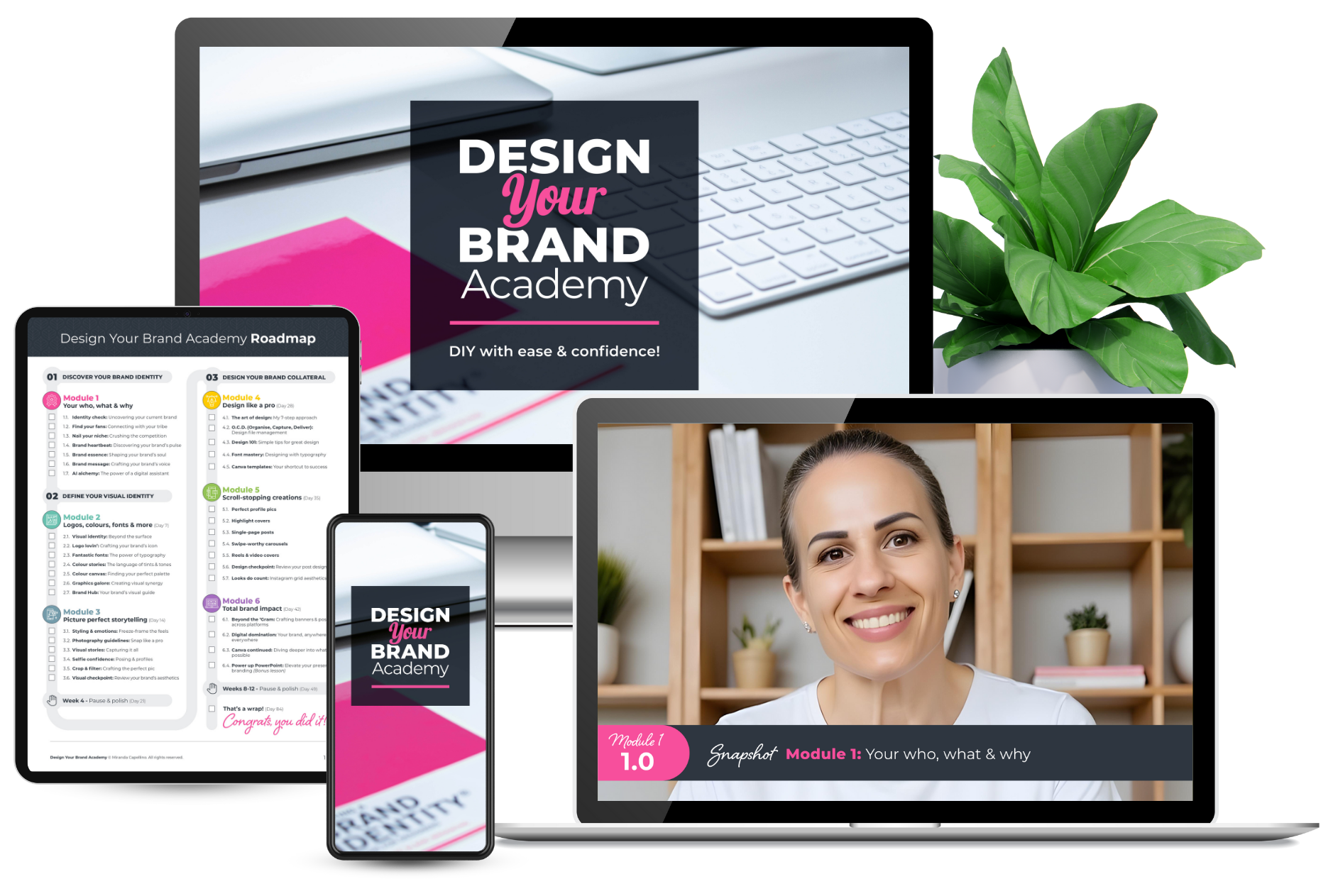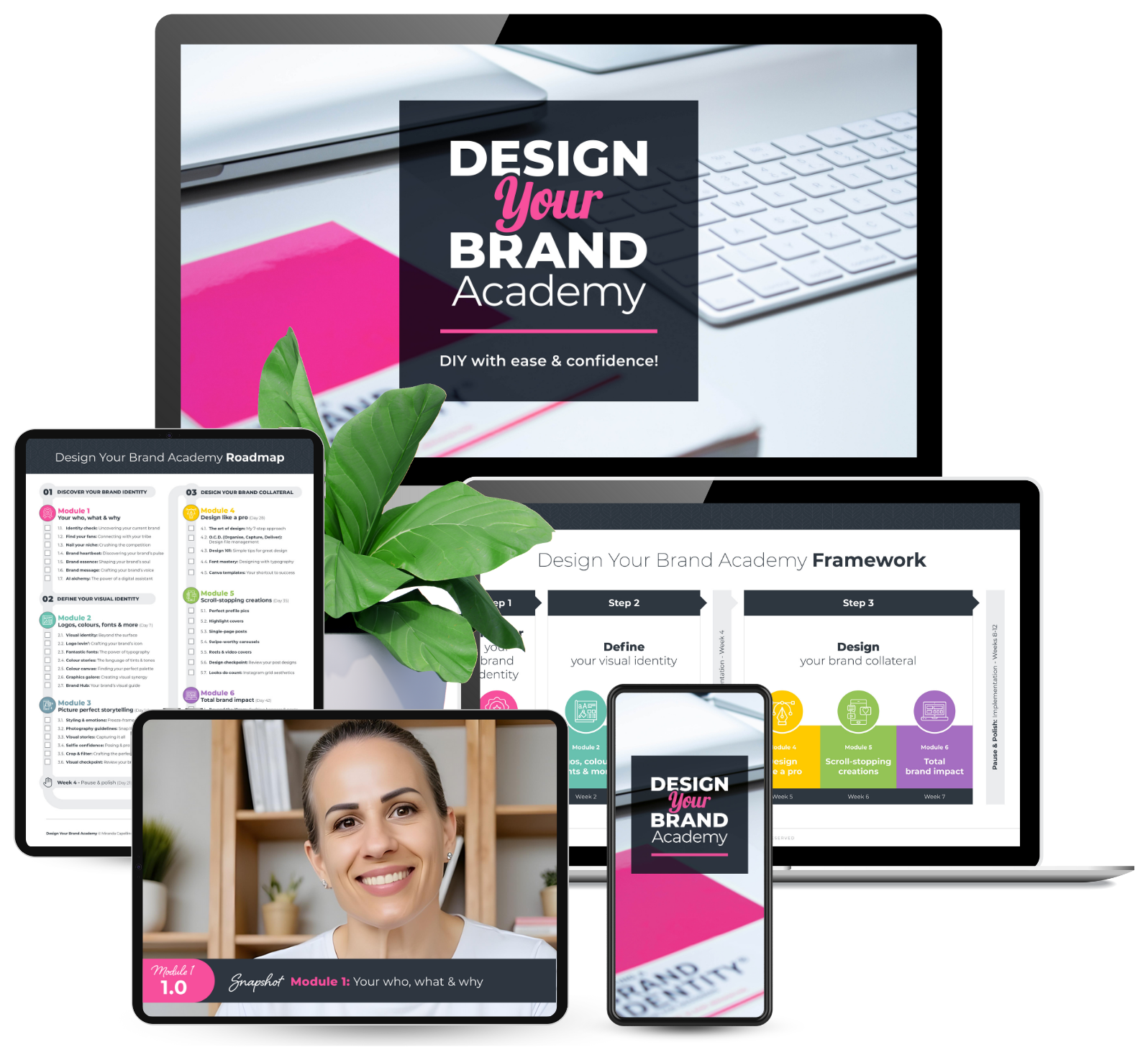 The step-by-step design & branding course for business owners & creators who want to build a magnetic, pro-level brand – without the stress, guesswork or Googling.