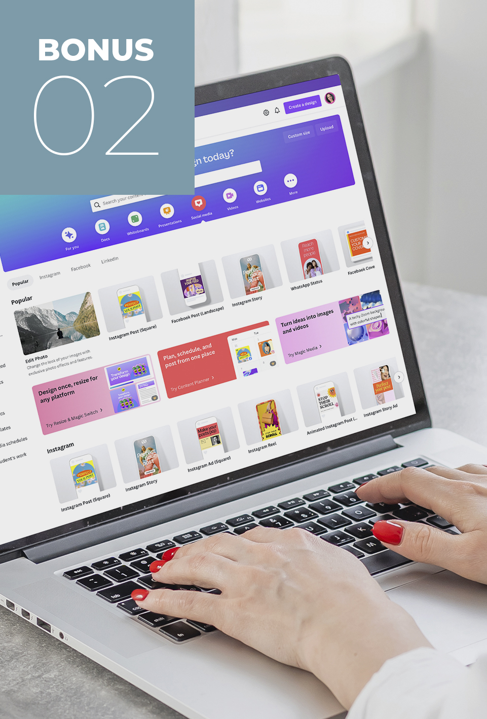 Your workbooks are packed with hand-picked, high-performing Canva templates I’ve personally tweaked, tested & polished to perfection. Margins? Done! Platform-safe guides? In place! And when Instagram changes its size yet again, I'll update them, so you always have on-trend, done-for-you designs that are ready to roll!